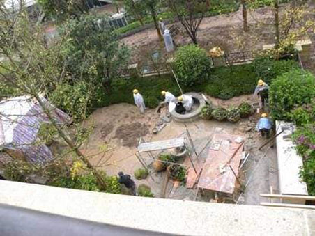 2、當以上基本工作做好以后,公司便會派遣工人挖鋪裝基礎土方的位置,并且與此同時開始調(diào)拌水泥沙漿,進行人工的粘貼鋪裝面磚,一些有實力的大型公司還時進行磚砌墻體和木質(zhì)品的安裝,以便在短的時間內(nèi)完成這個步驟的進行,使客戶更快的看到花園的效果。