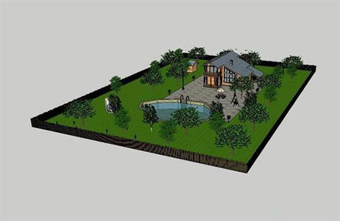 三、美式庭院設計平面圖與效果圖