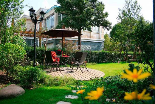 1、建筑物:在別墅的庭院里,矮墻、平臺、走廊、假山等建筑物是擋不住視線的,他們可以區(qū)分庭院的空間來限制入口,不會把院子變窄,戶外生活很重要,用原木做的亭子一樣的構(gòu)造和平臺可以用來觀賞和休息。